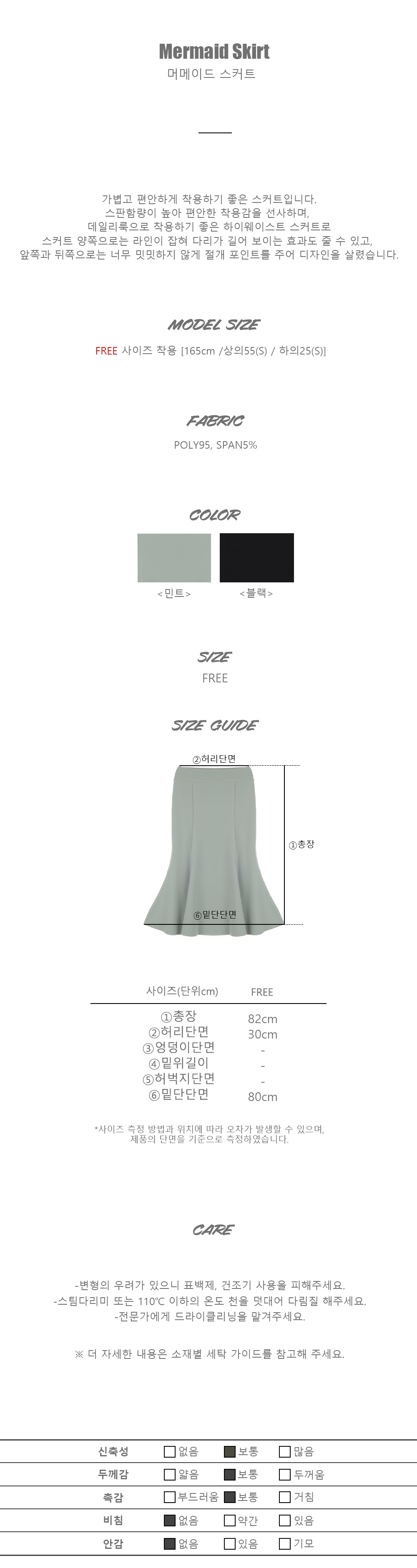 스판함량이 높아 편안한 착용감을 선사해주어 데일리룩으로 코디하기 좋은 머메이드 스커트