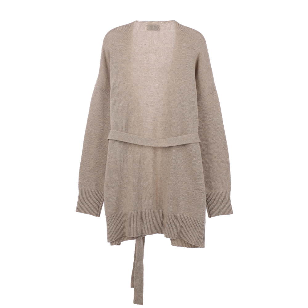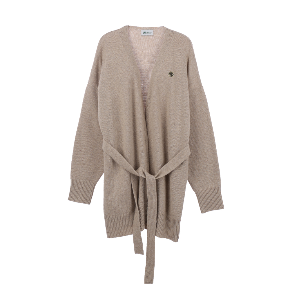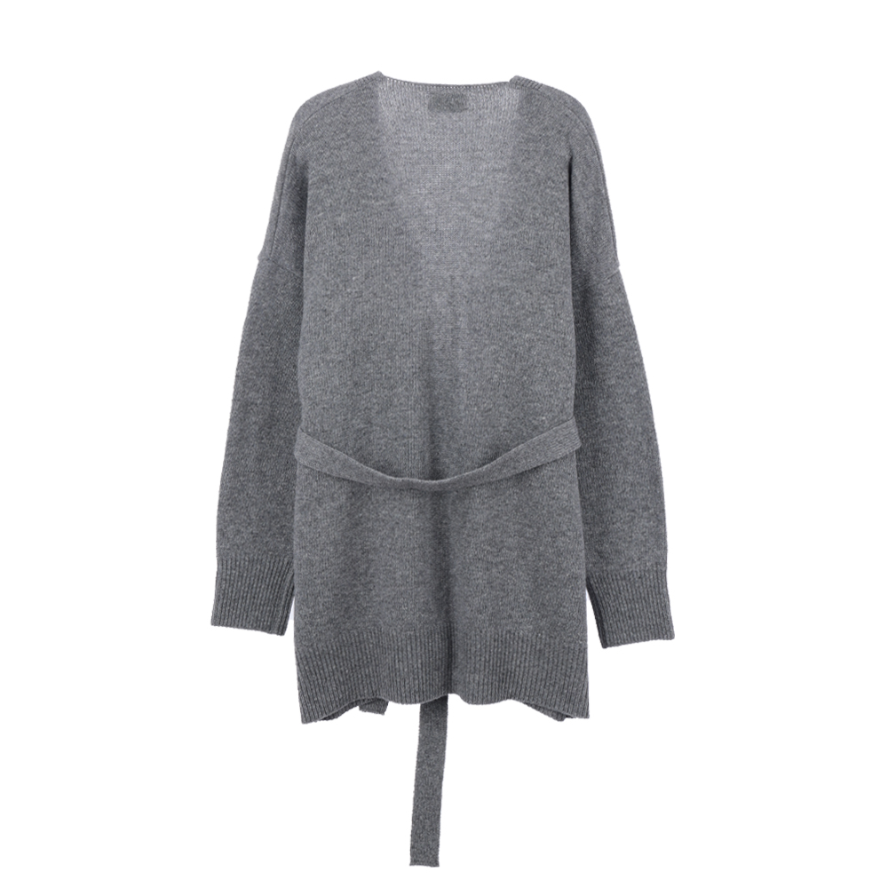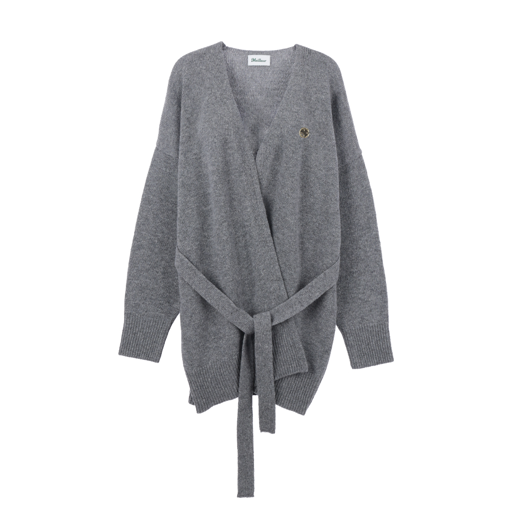 브이넥라인 디자인과 허리 스트랩 디테일로 포인트를 준 랩 스타일 가디건