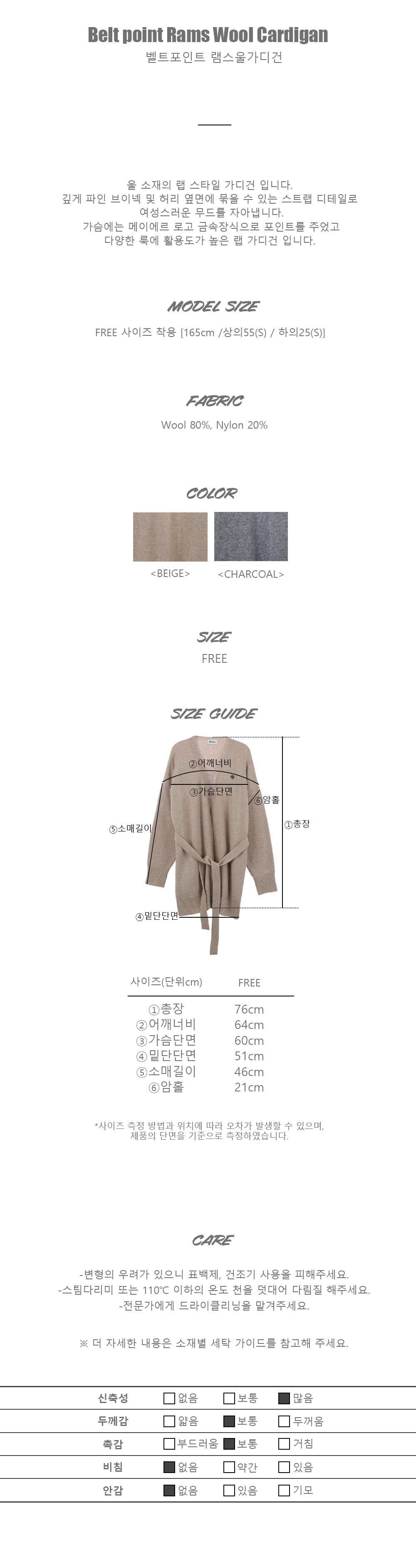+ 소재 특성상 드라이크리닝, 찬물로 손세탁만 가능하며, 건조기 사용은 절대 금합니다.