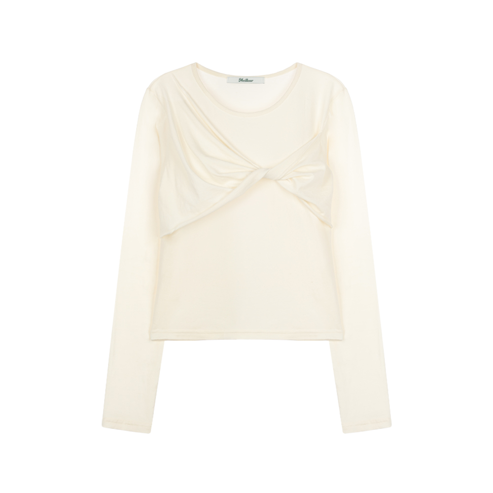 언발란스한 리본 포인트로 페미닌한 무드를 연출해주는 티셔츠