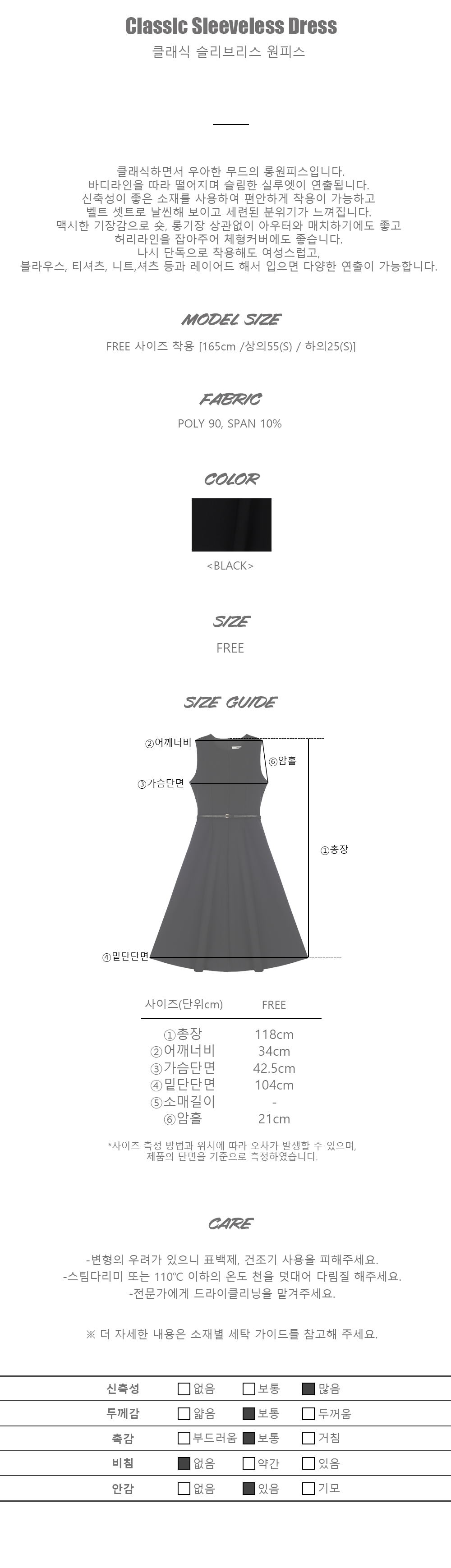 클래식하면서 우아한 무드의 슬리브리스 원피스