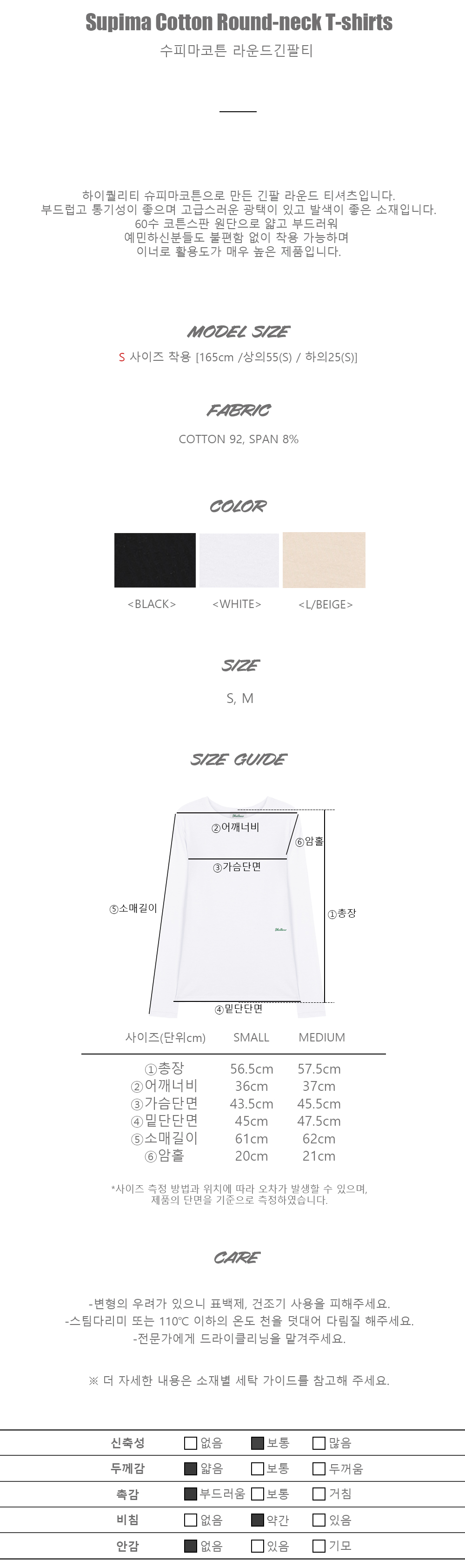 기본템으로 입기 좋은 라운드 긴팔티셔츠