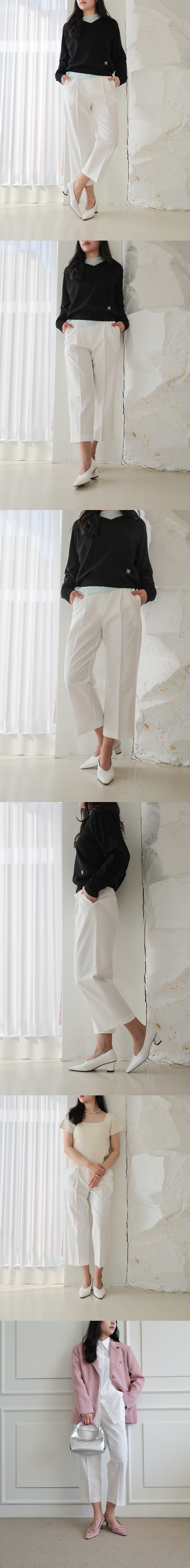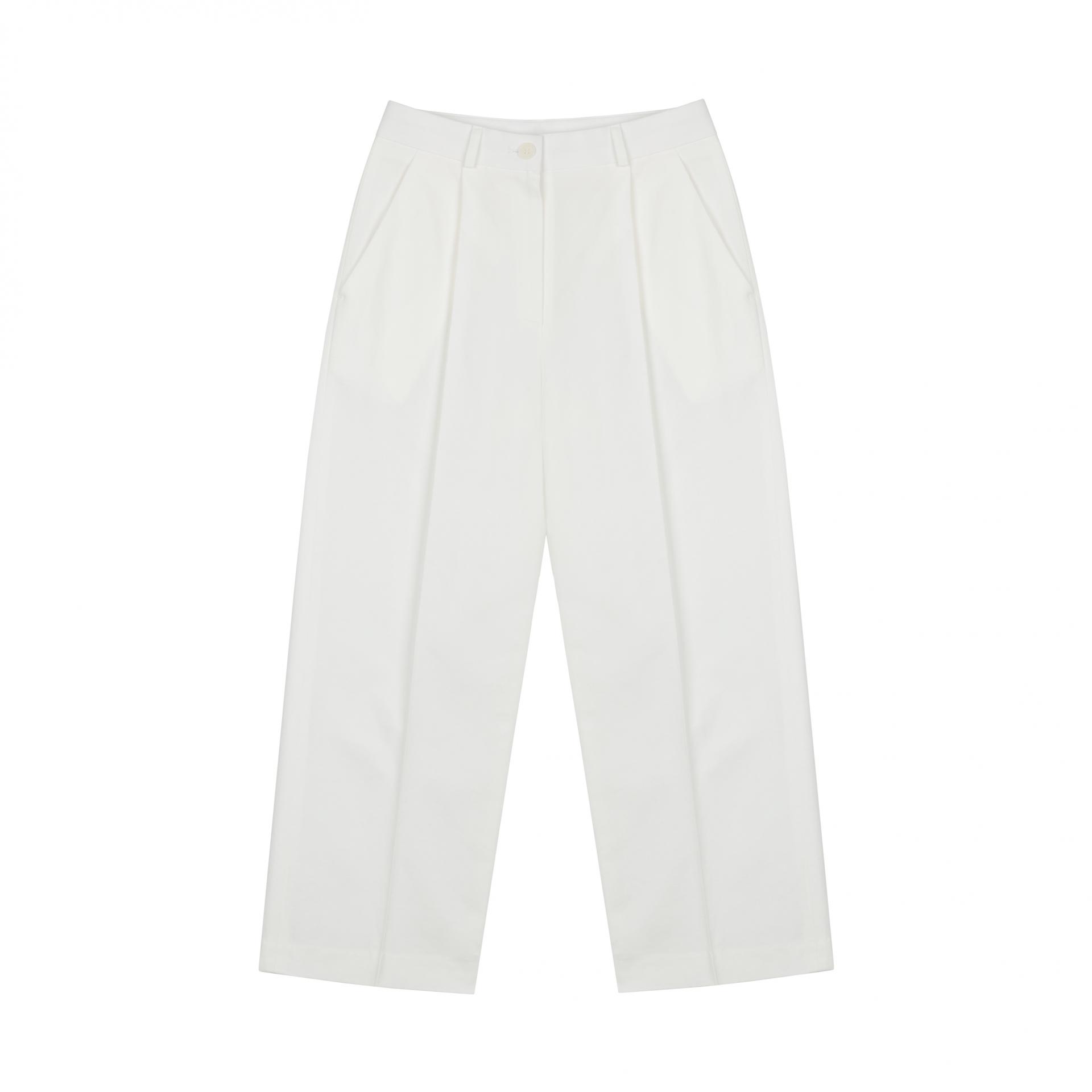 프론트 원핀턱라인이 들어간 탄탄한 코튼 원단으로 제작된 코튼 슬랙스