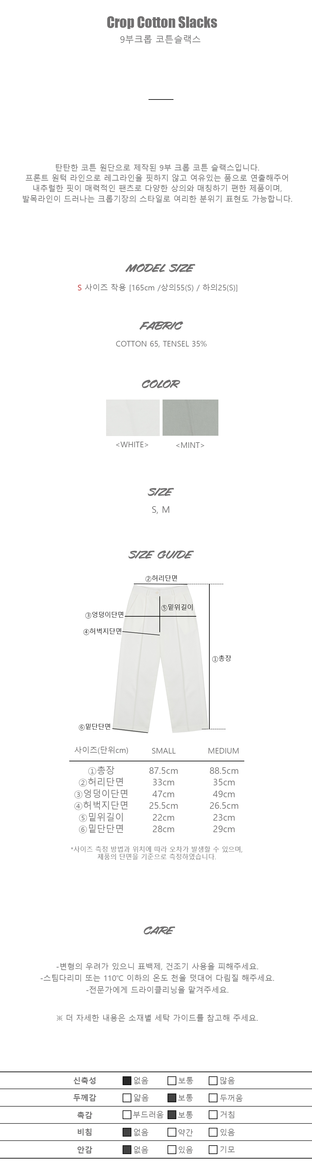 세탁후 양쪽 옆라인 봉재선 틀어짐 현상이 있을 수 있으나 이는 소재의 특성상 불량이 아니니 참고해주세요.