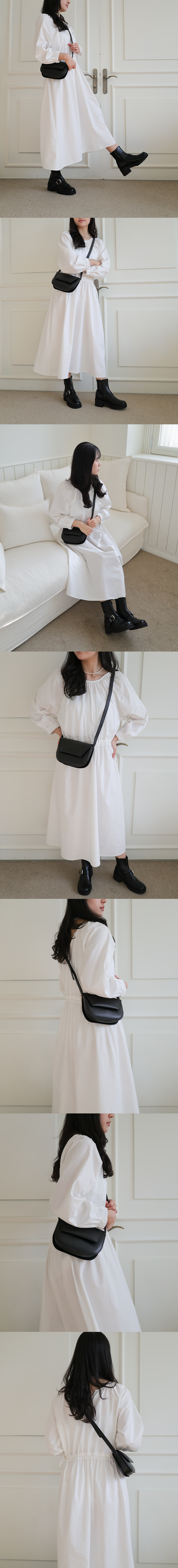 단정하게 입어지는 깔끔한 라운드넥 디자인의 스트링 롱원피스