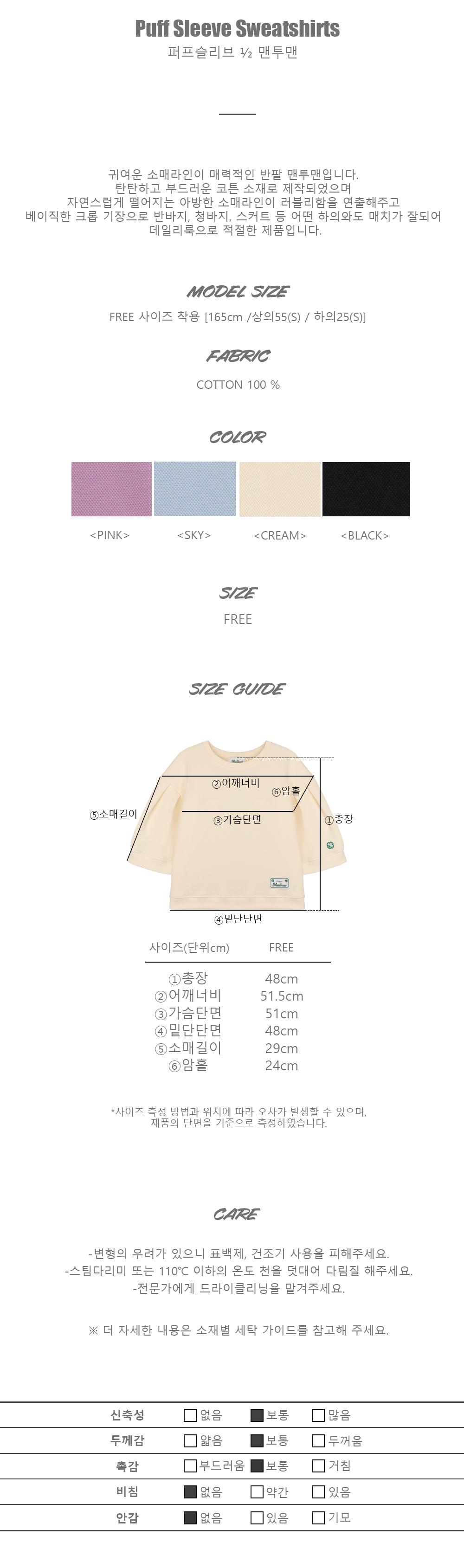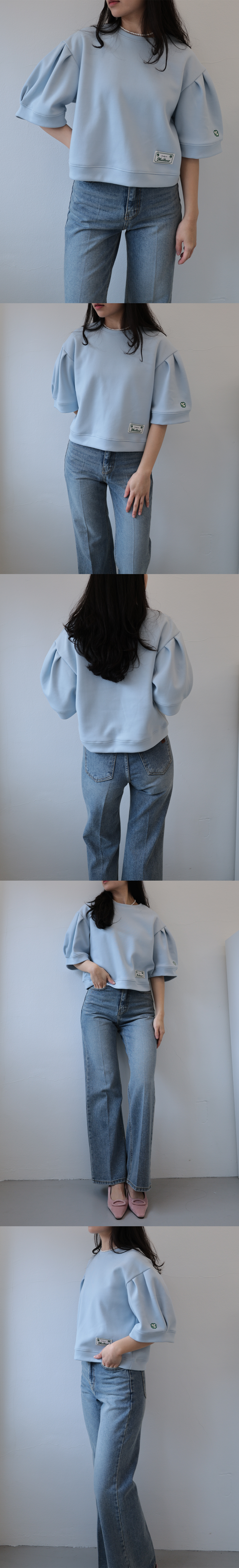 귀여운 소매라인이 매력적인 반팔 맨투맨