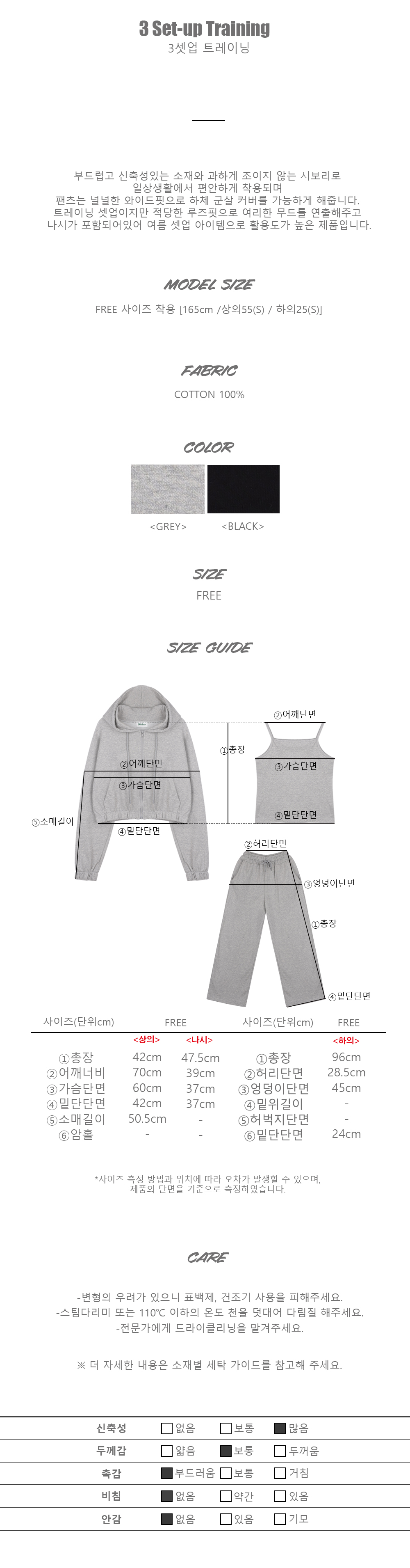 부드럽고 신축성있는 소재의 루즈핏 3셋업 트레이닝