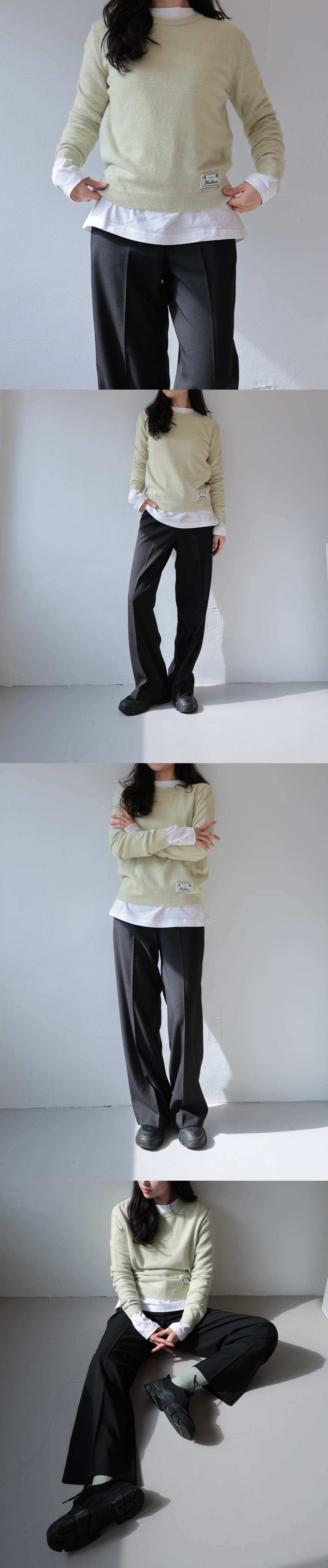스탠다드한 핏에 울 나일론 혼방원단으로 부드럽고 따뜻하게 착용가능한 니트