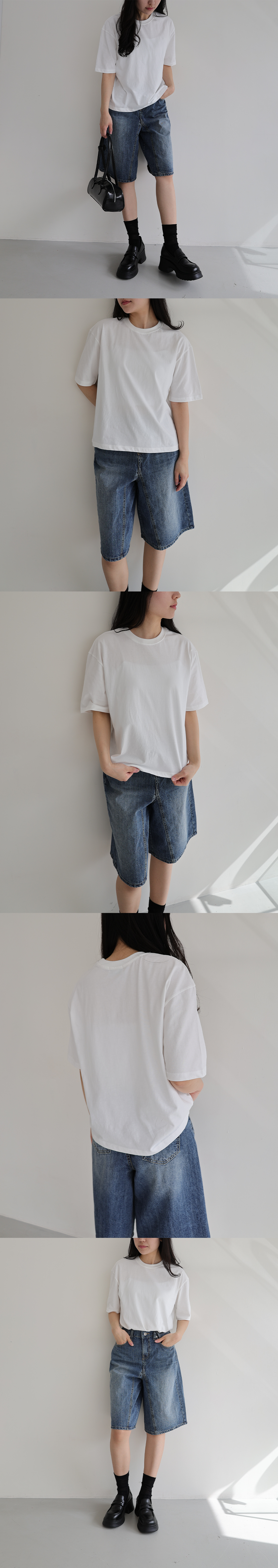 시즌마다 꺼내입기 좋은 베이직한 디자인의 5부 반팔티셔츠
