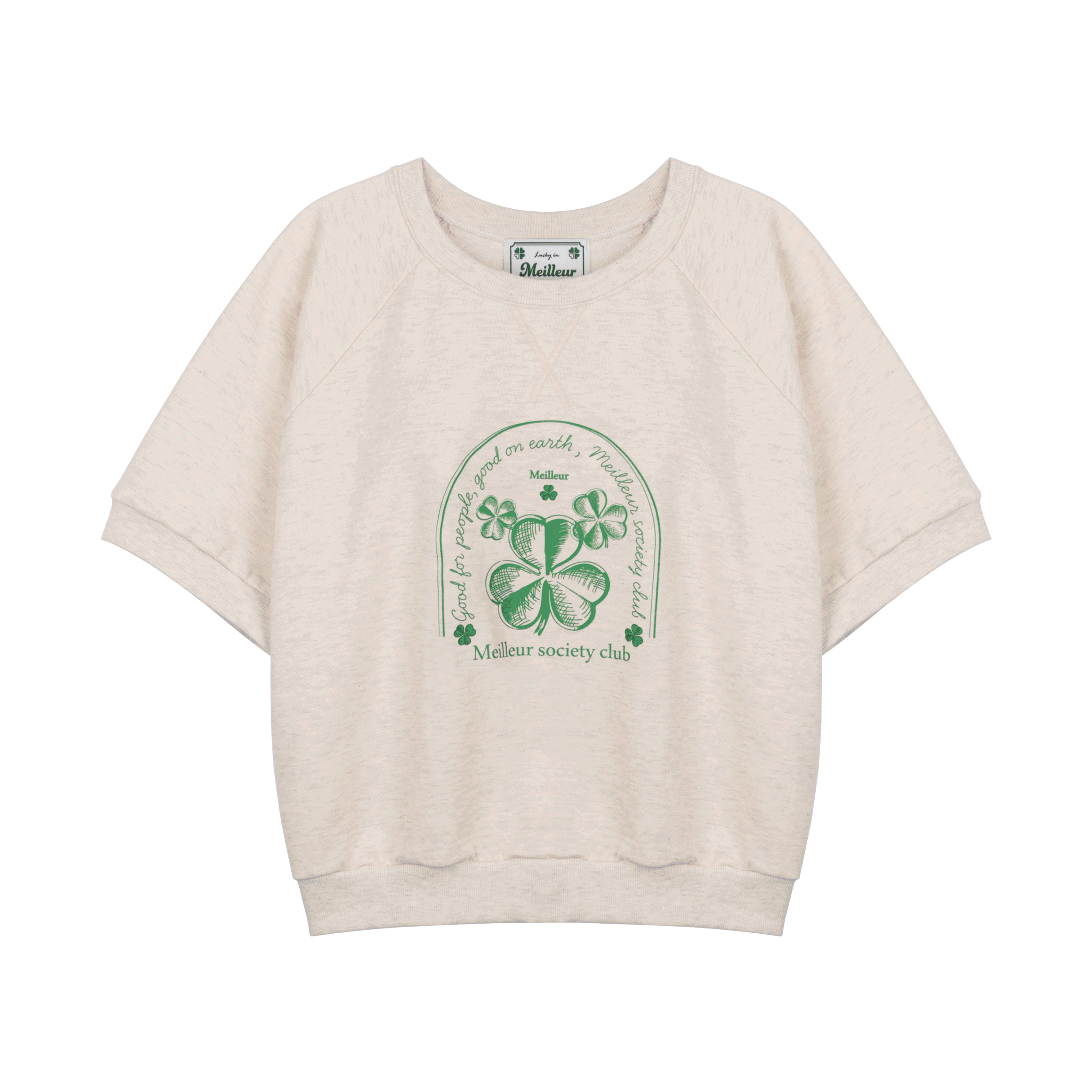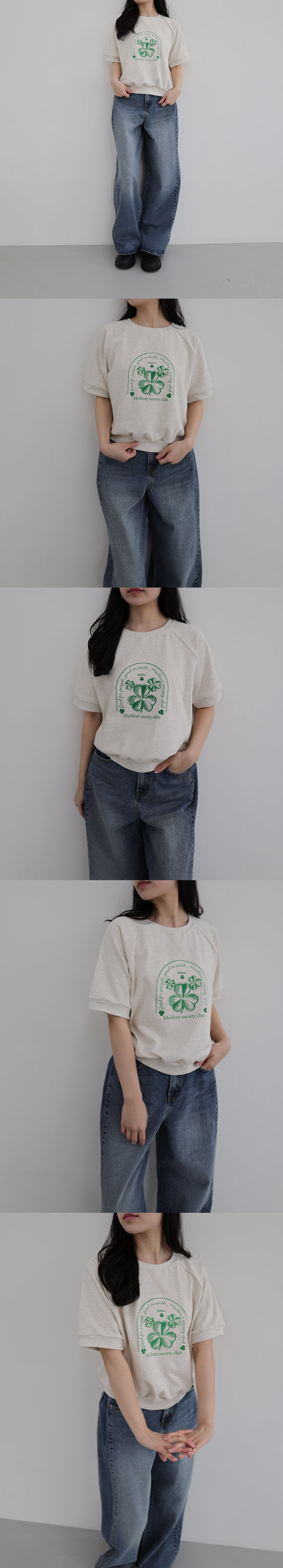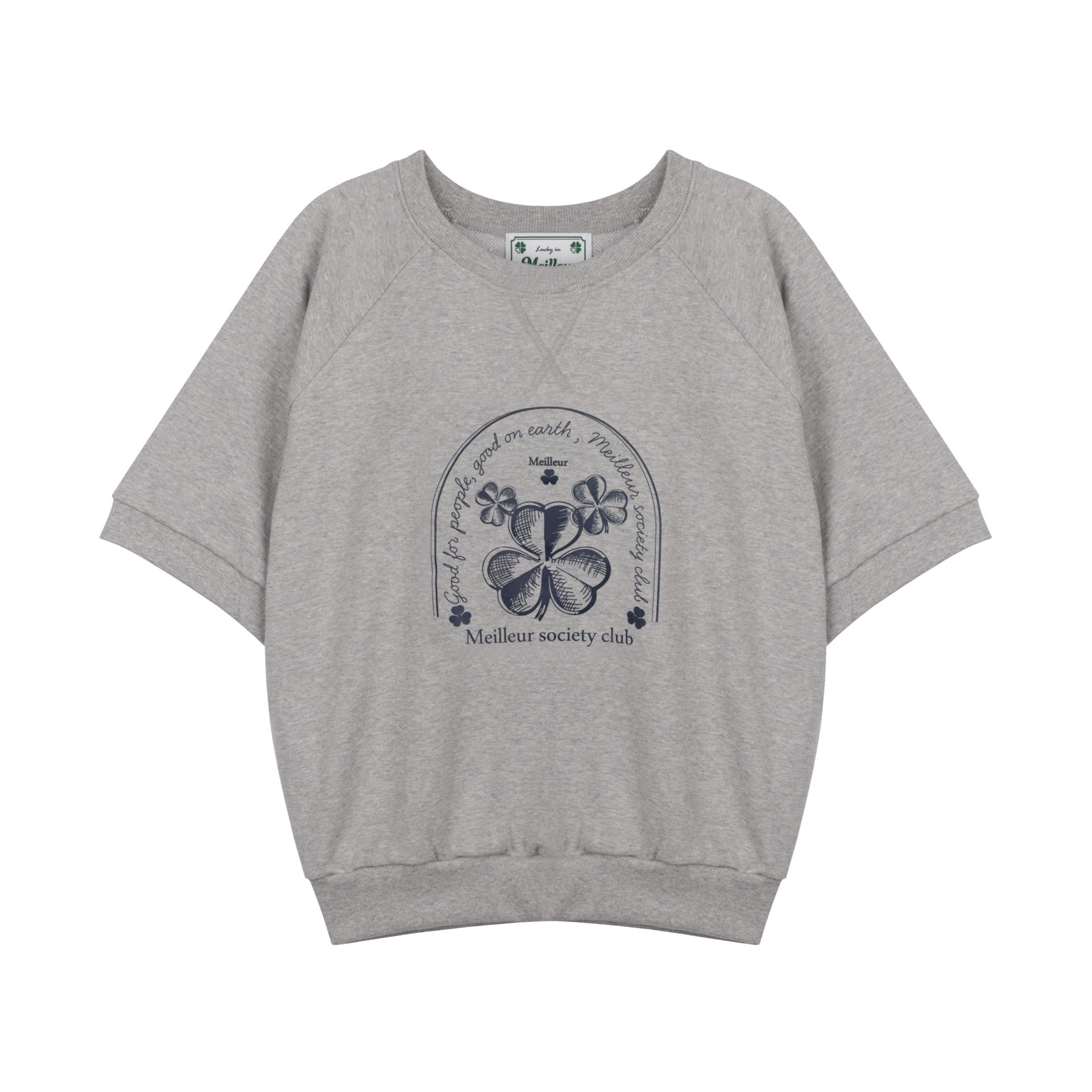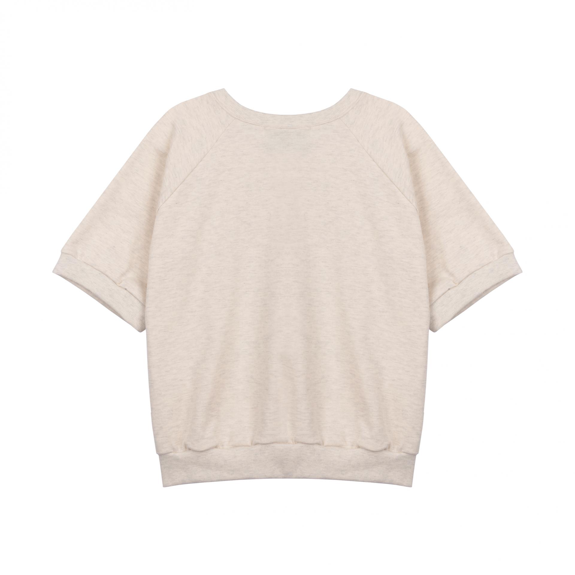 레글런 어깨라인과 여유있는 핏으로 캐주얼하게 즐기기 좋은 반팔 맨투맨