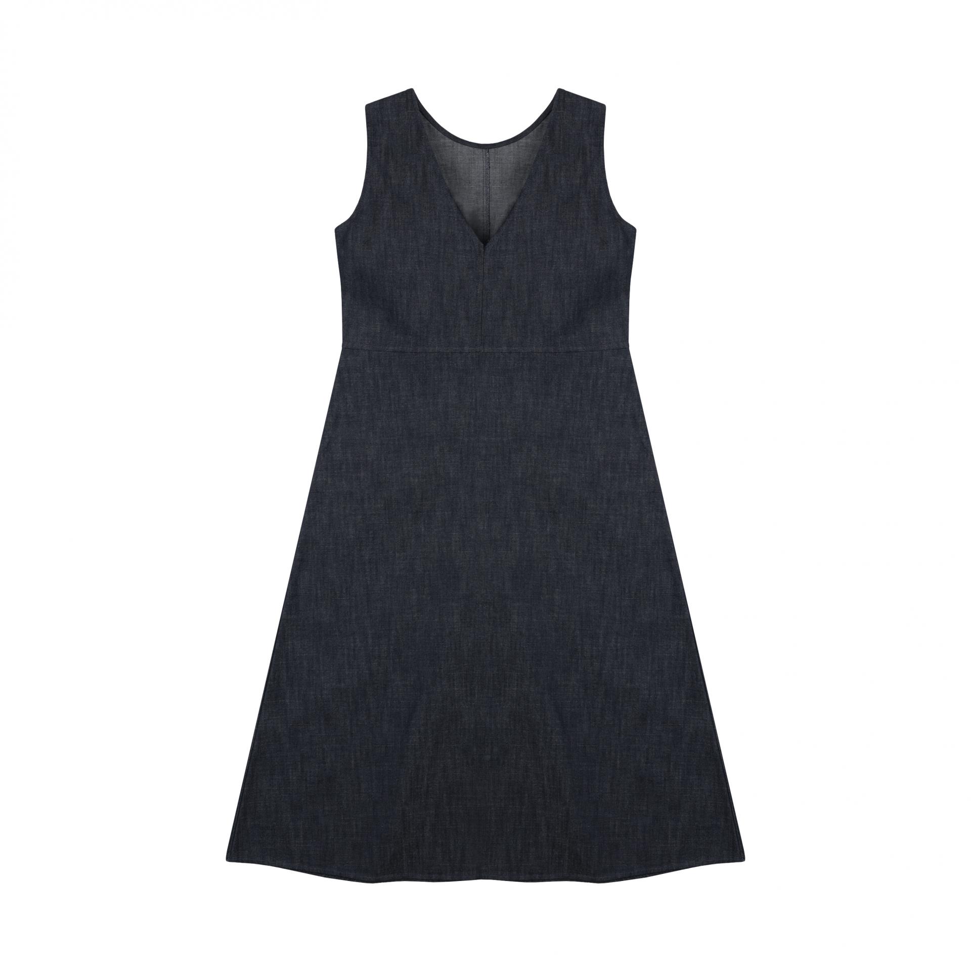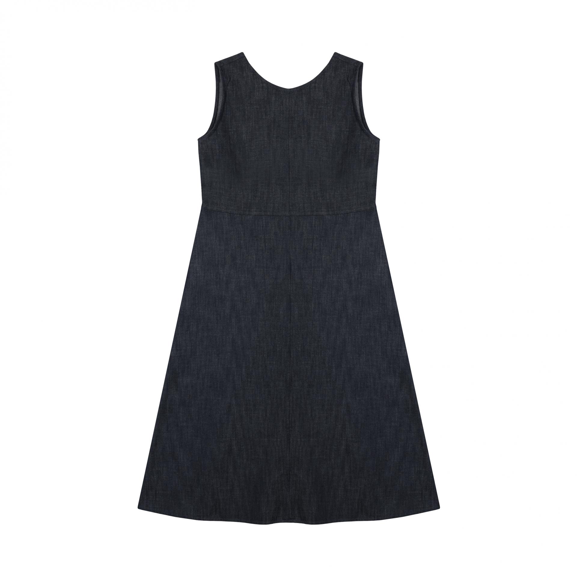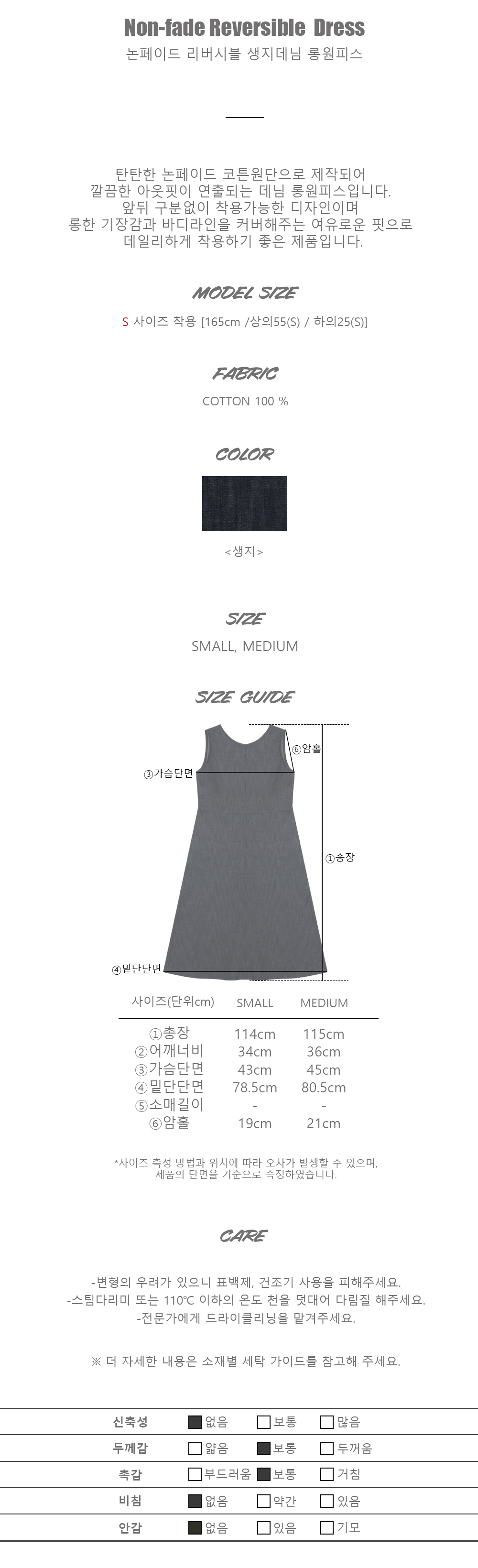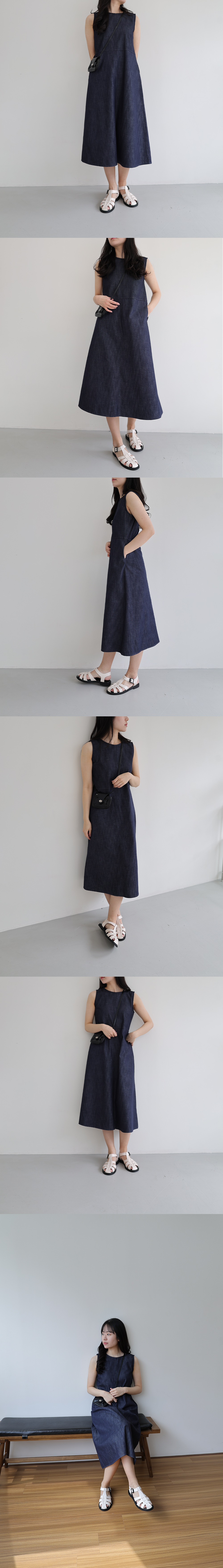 탄탄한 논페이드 코튼 원단으로 제작되어 깔끔한 핏이 연출되는 데님 롱원피스