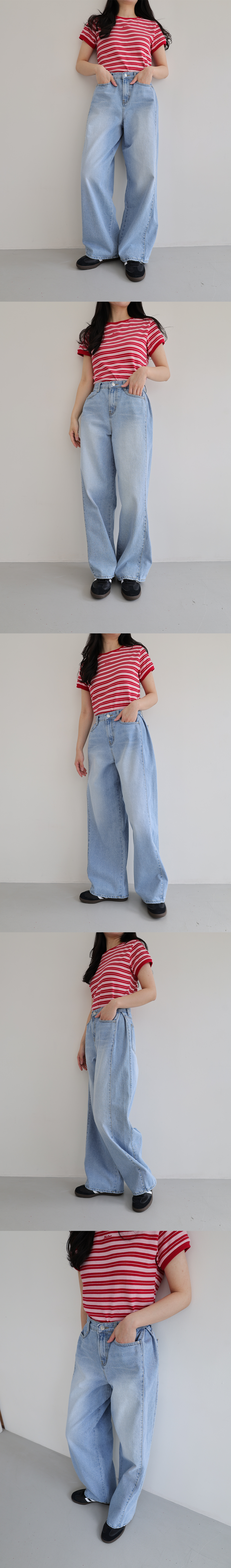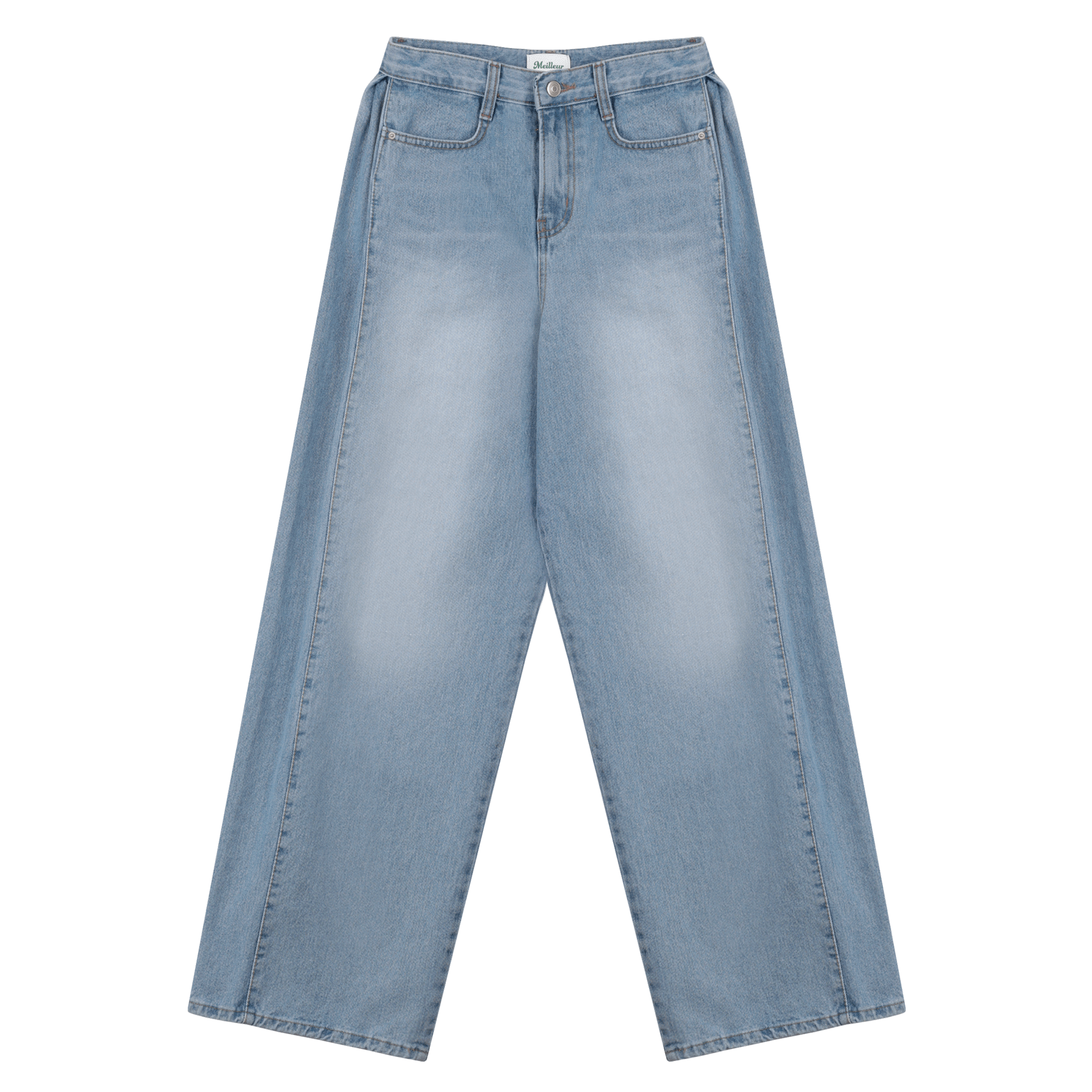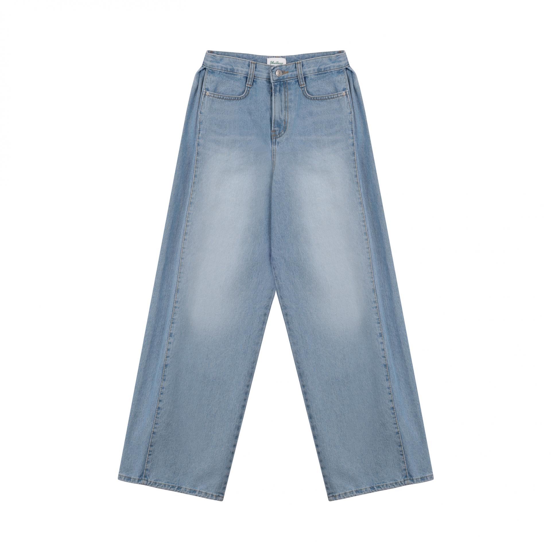 사이드 맞주름 핀턱이 자연스러운 벌룬핏을 연출해주는 캐주얼한 무드의 데님 팬츠