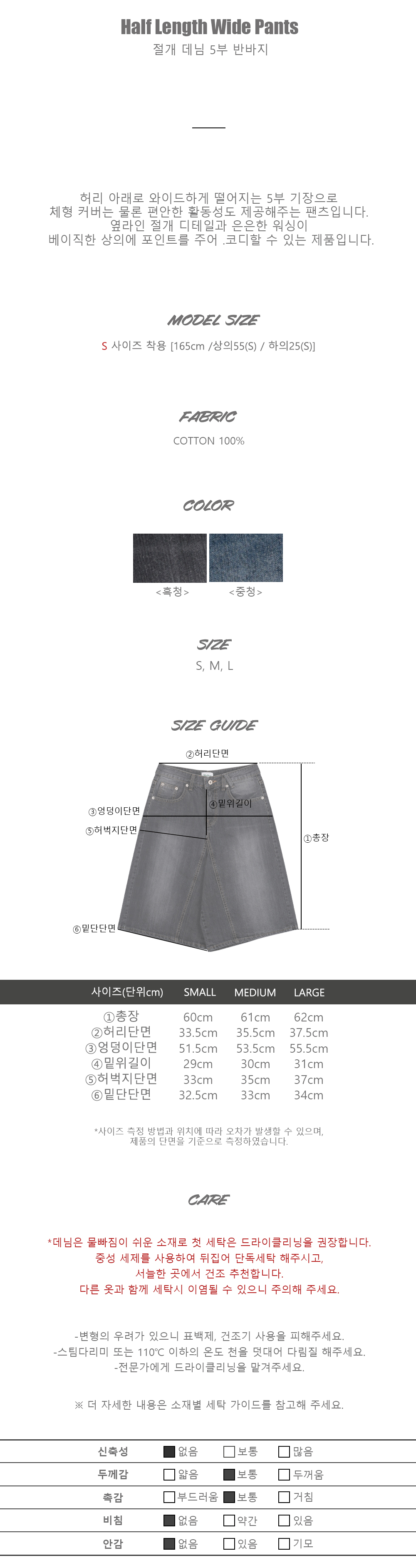 ▪데님 원단 특성상 물빠짐이 있을 수 있으므로 단독 세탁을 권장합니다.