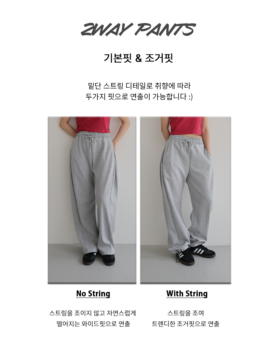 허리 전체 밴딩과 와이드한 핏감으로 힙스러운 코디를 연출해주는 팬츠