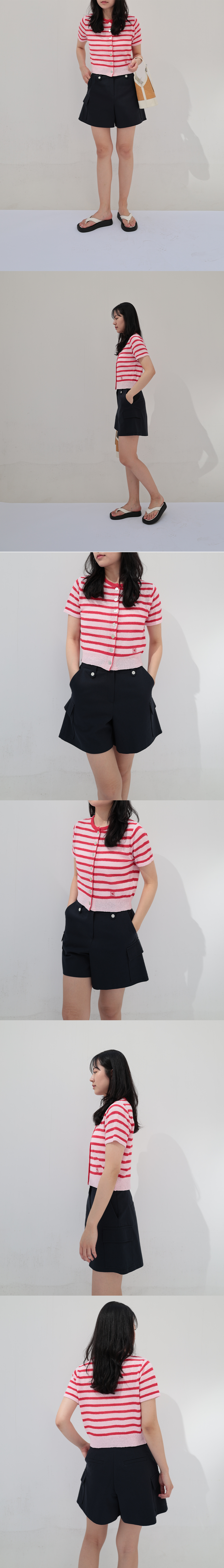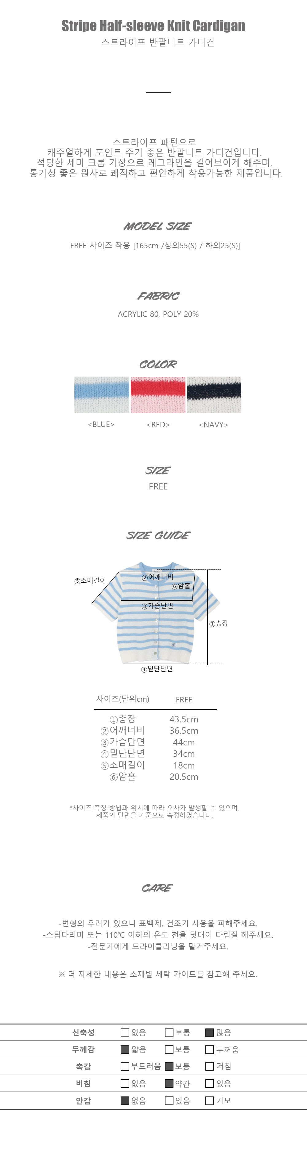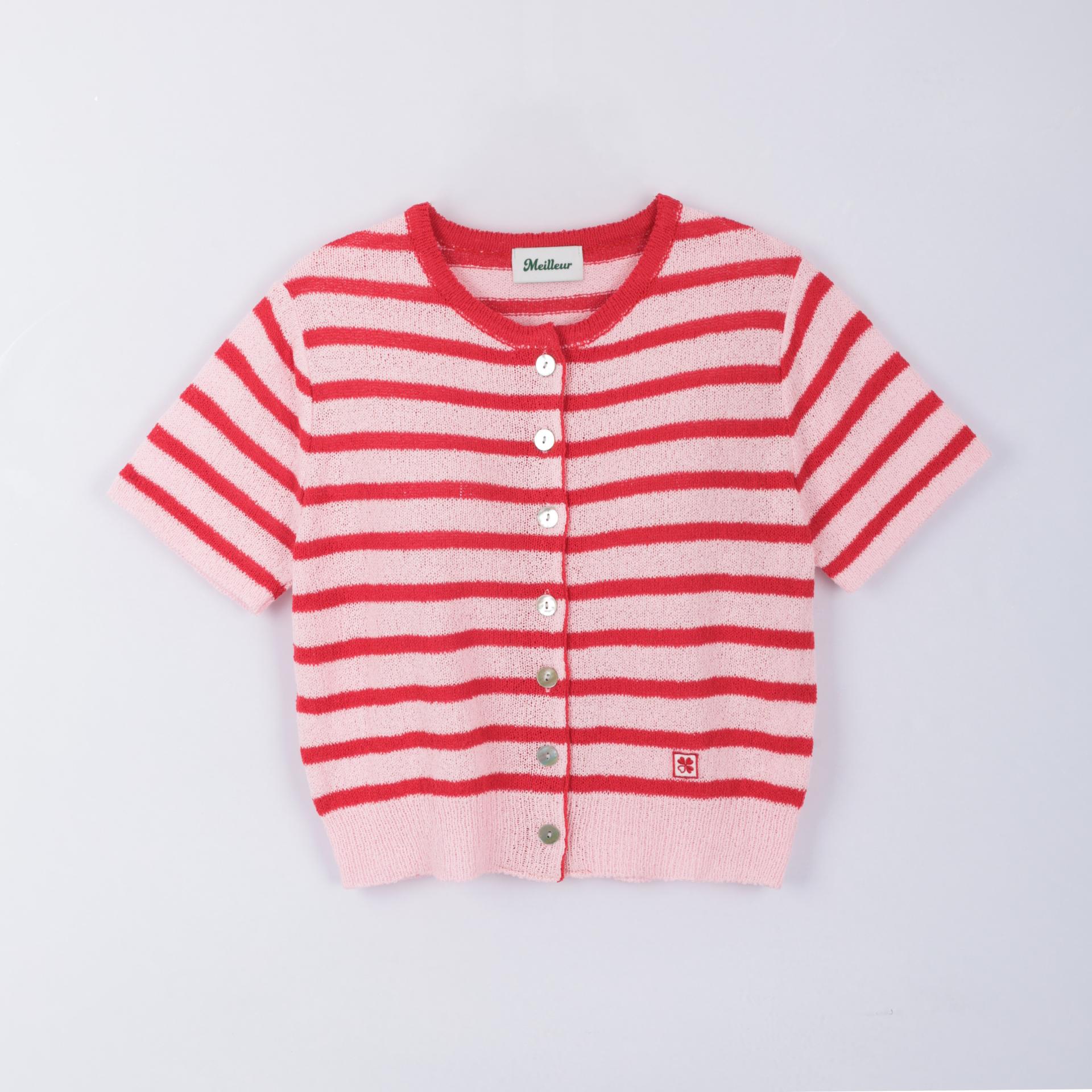 스트라이프 패턴으로 캐주얼하게 포인트 주기좋은 반팔니트 가디건