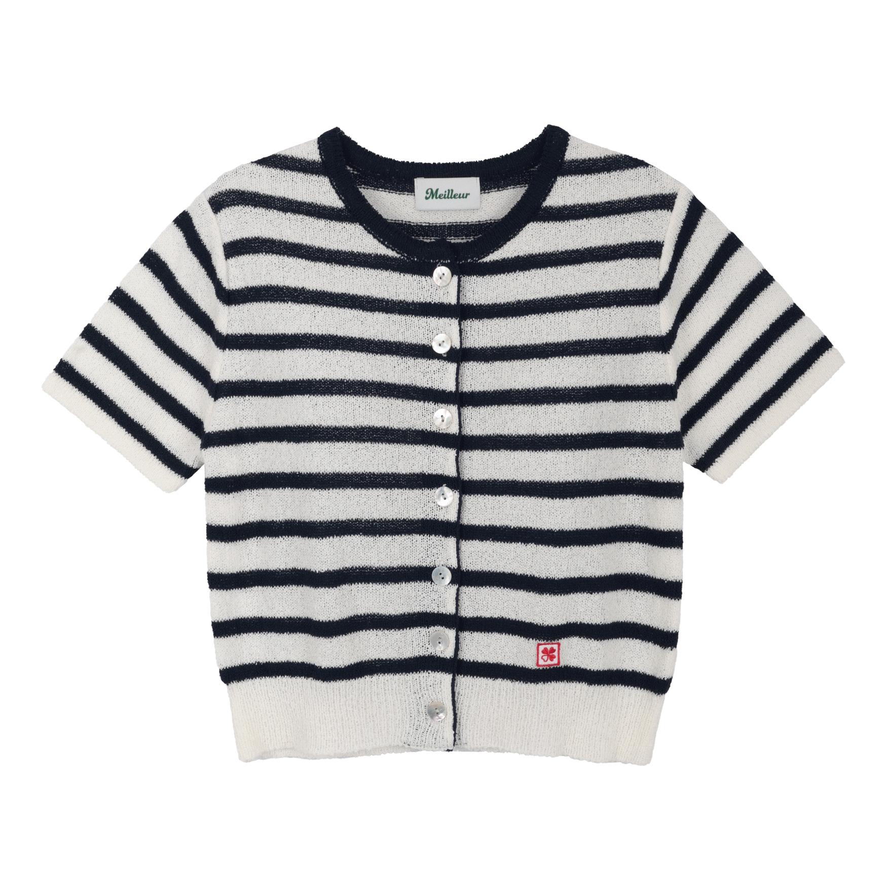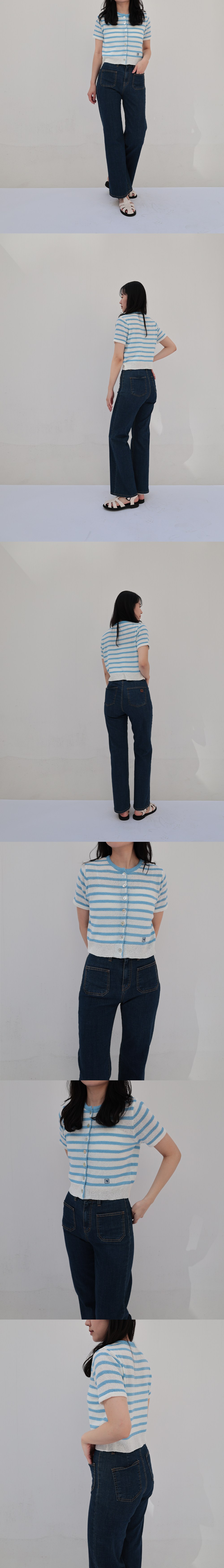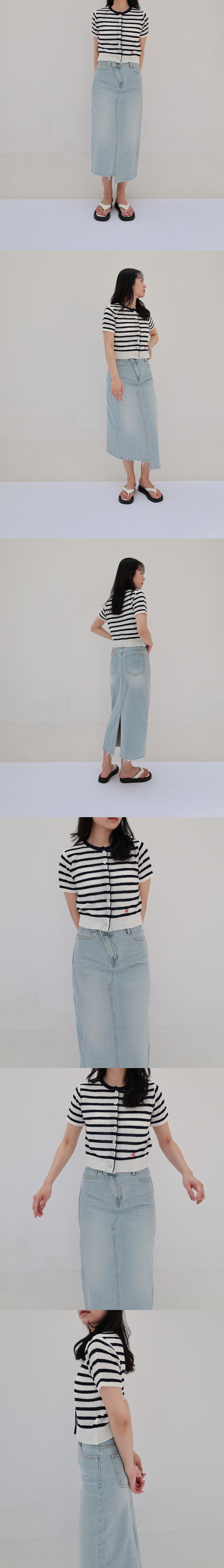 스트라이프 패턴으로 캐주얼하게 포인트 주기좋은 반팔니트 가디건