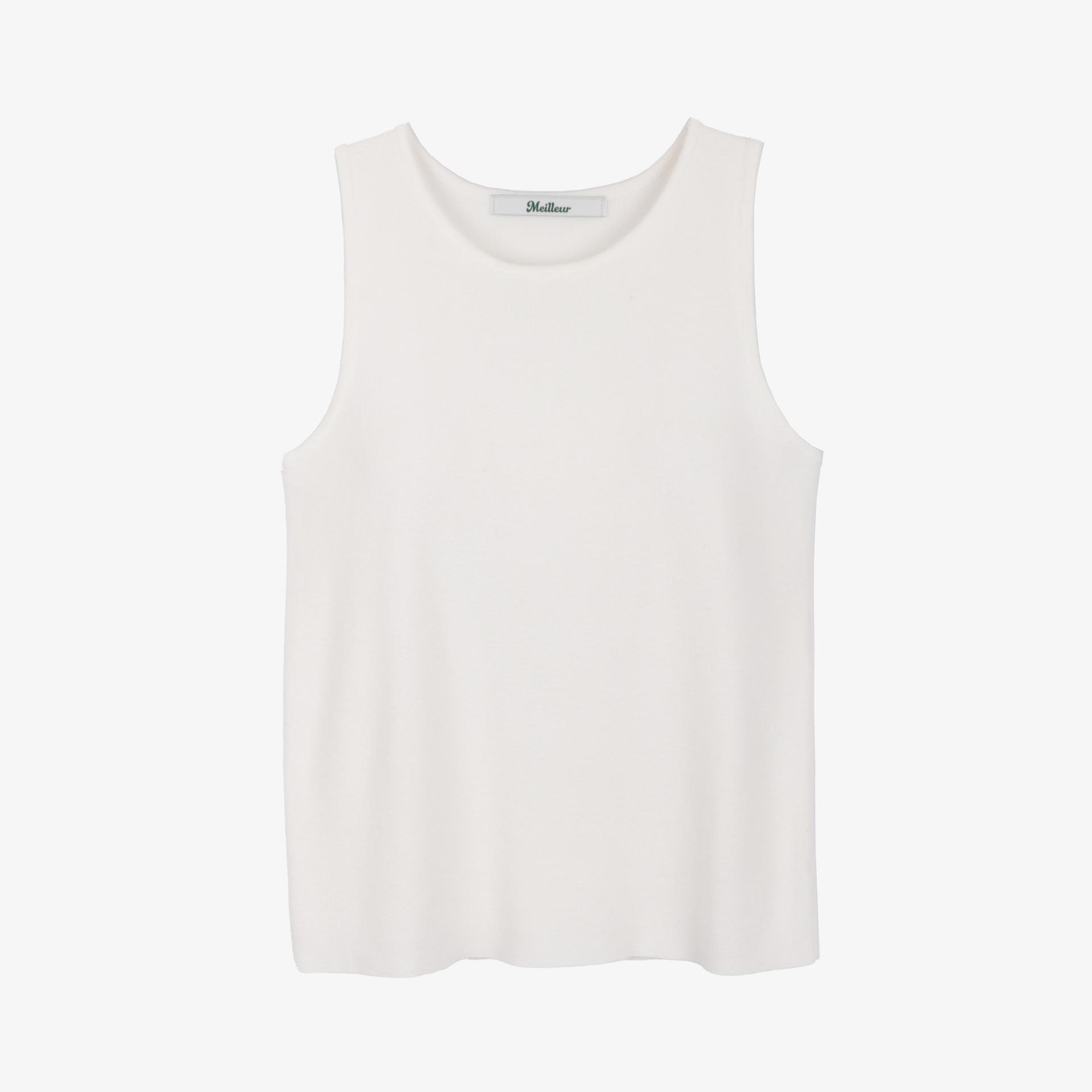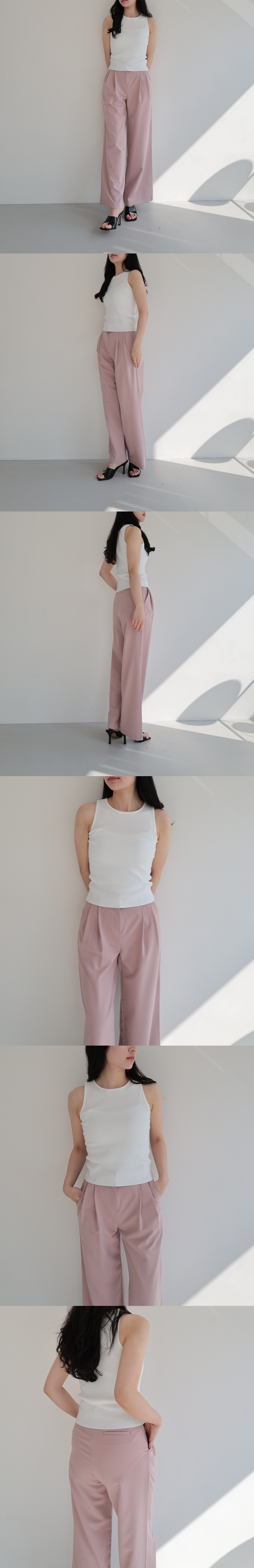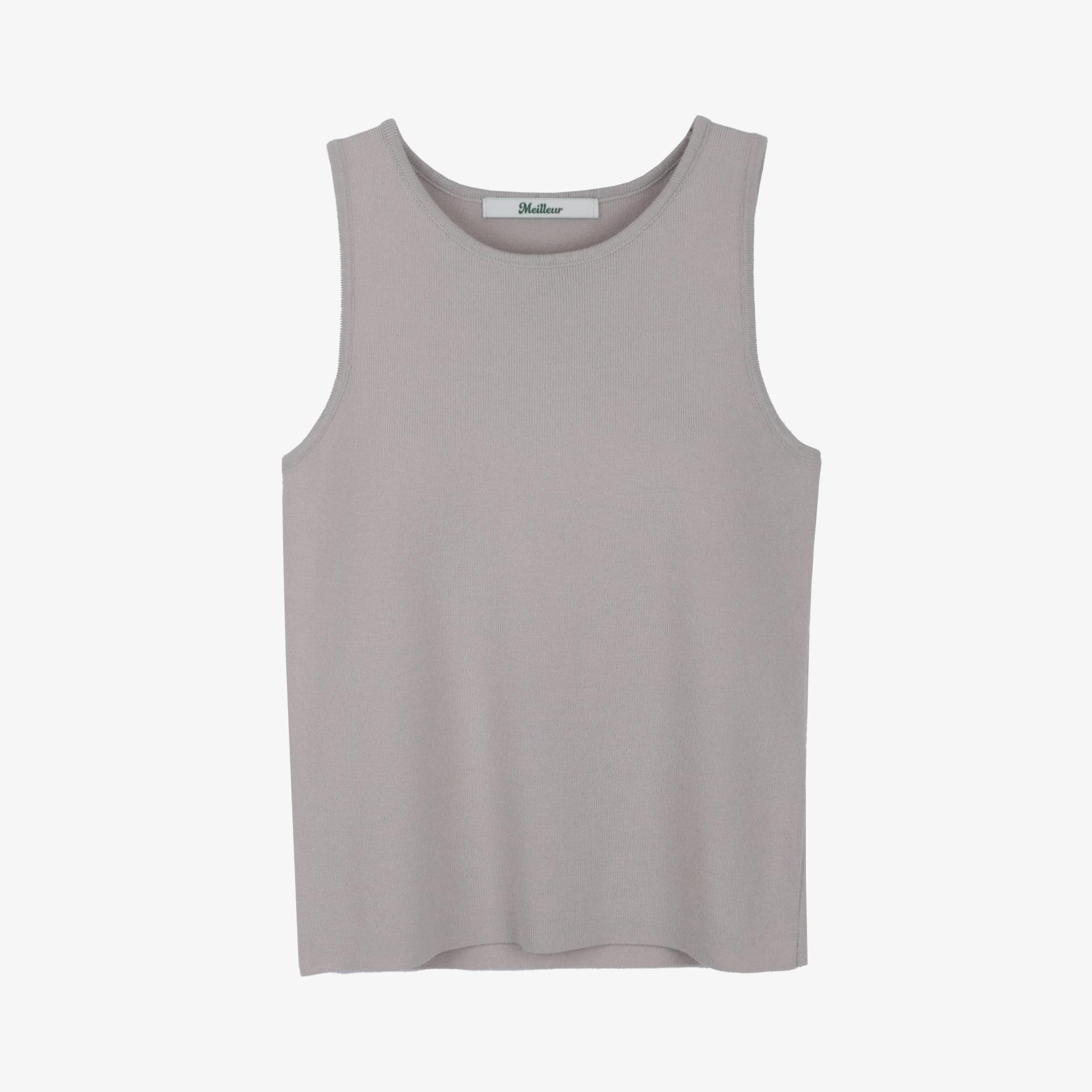 부드러운 니트 원단으로 착용감이 좋으며 핏 되게 착용되어 페미닌한 무드의 나시