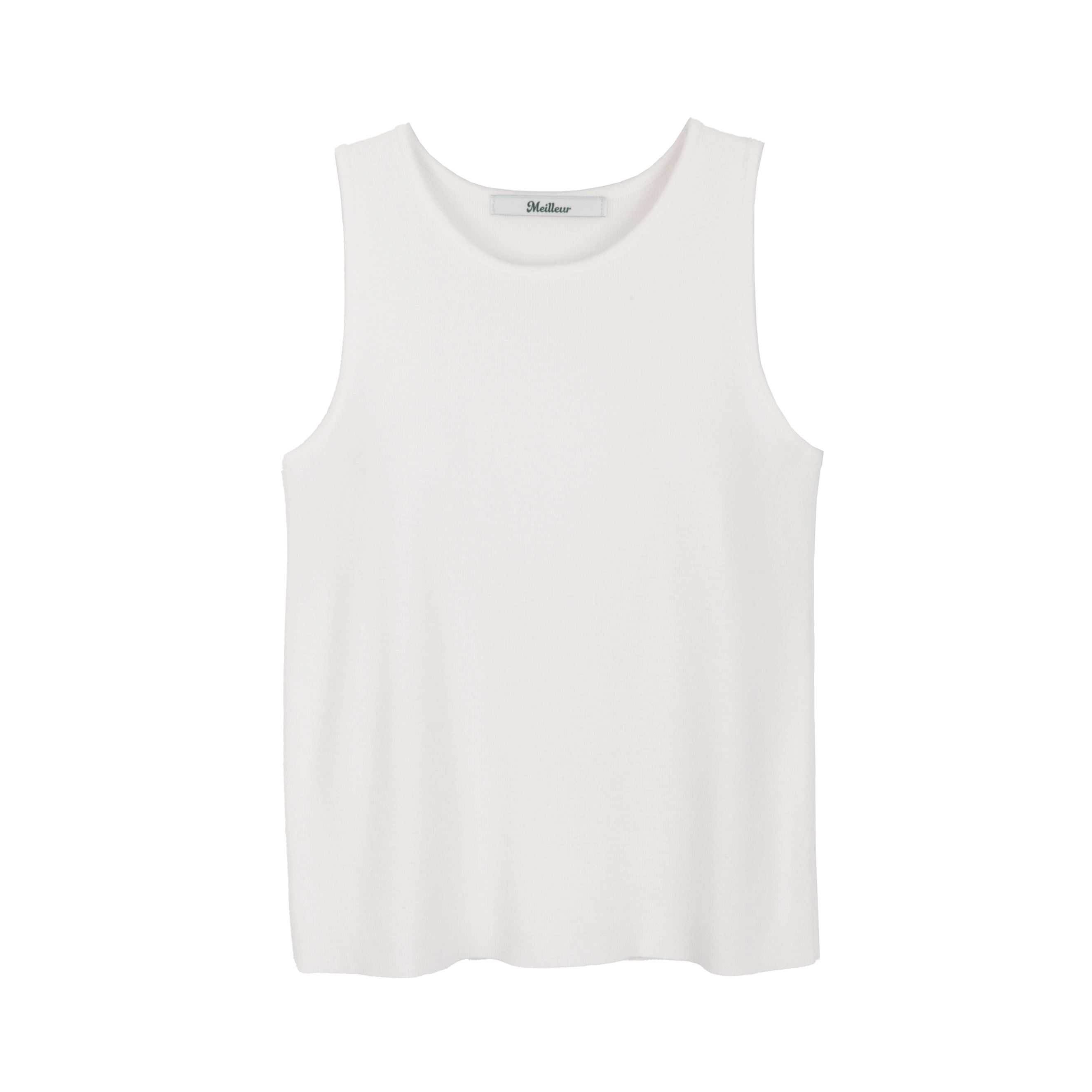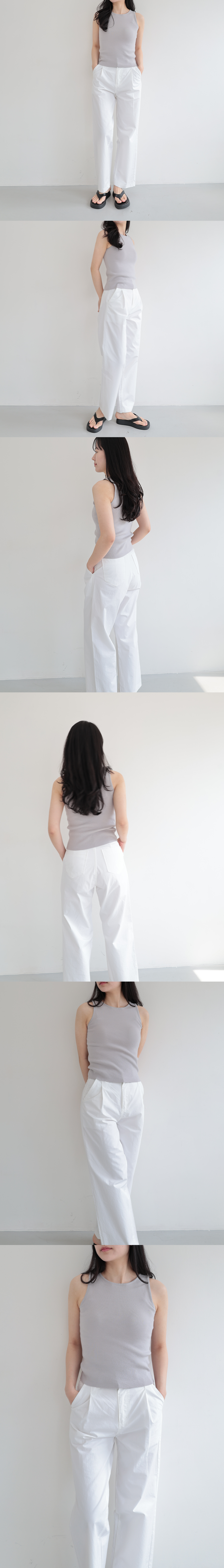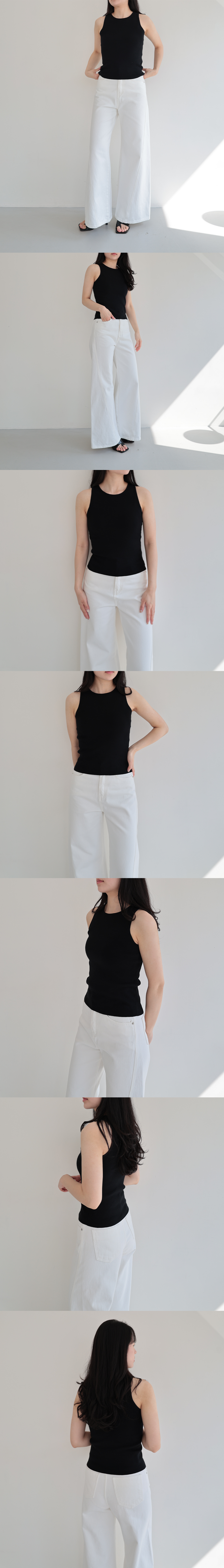 부드러운 니트 원단으로 착용감이 좋으며 핏 되게 착용되어 페미닌한 무드의 나시